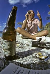 Driving around South America with a spider monkey in his pocket, stinking up the car with rum-drenched monkey vomit…Nailing a pig heart to Jack Nicholson’s front door while blaring a recording of animals dying from a boom-box in the woods…Throwing an IBM Selectric typewriter out the window and firing a few .44 caliber rounds in it.