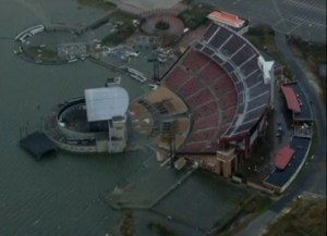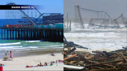 Seaside Heights Boardwalk, before and after. That’s the Jet Star Roller Coaster in the ocean.