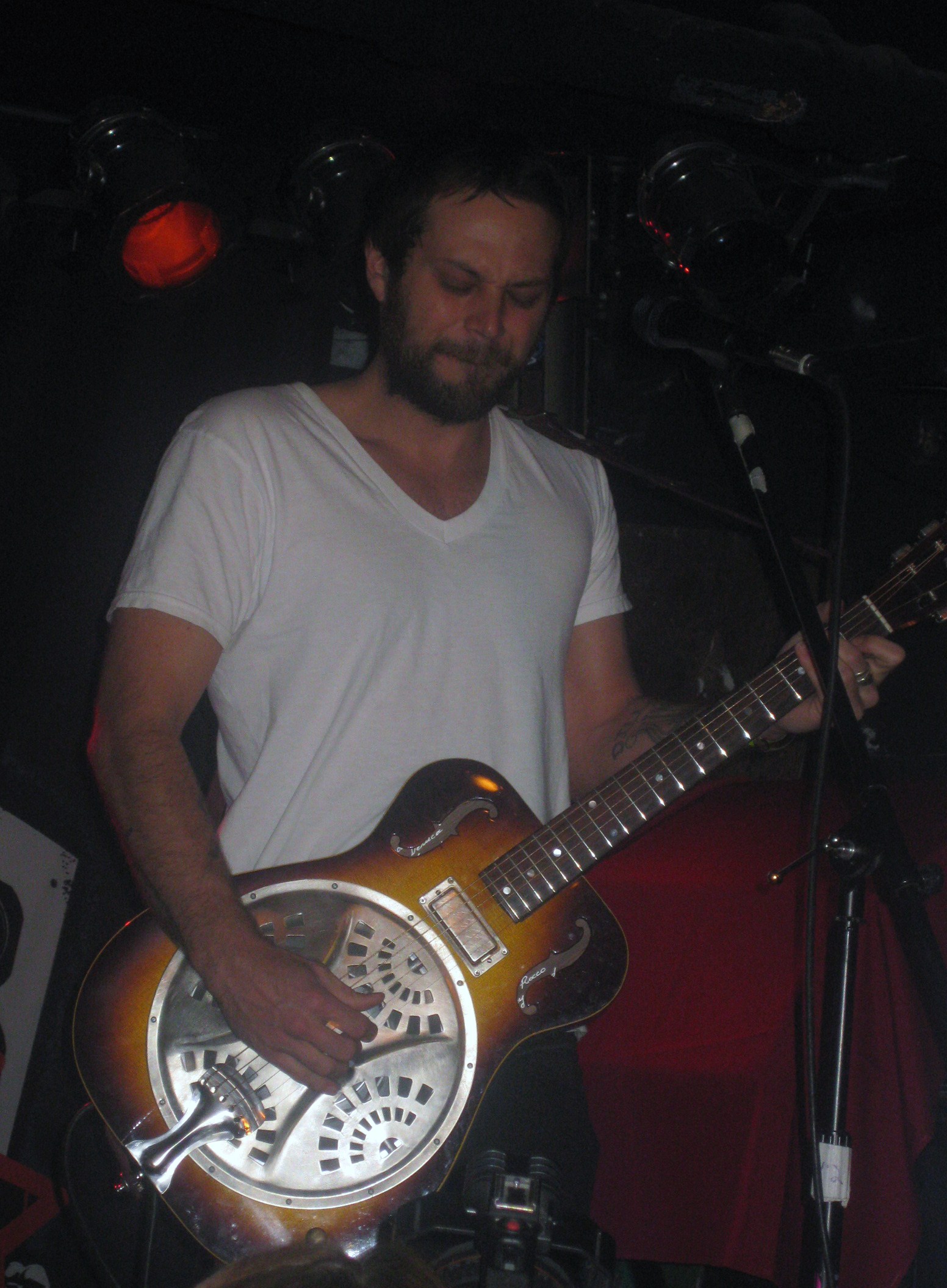 On April 8th, I had the pleasure of seeing Rocco DeLuca and the Burden live at the studio in Webster Hall and Bowery Ballroom. I happened to win some tickets on the rockin’ radio station 101.9 RXP the day before. At Webster Hall, Rocco DeLuca and drummer Ryan Carman played an intimate four song set for a small crowd. DeLuca rocked a Dobro and Carman hit a Cajon. I love their sound; you don’t usually hear a Dobro and bottle neck slide in indie music. It is hard to place someone like Rocco DeLuca in a genre just for the fact that he could be placed under so many. Just know that this band seriously stirs up you musical tastebuds; the fusion of rock, folk, and blues is surely enough to grab your attention. After the performance, there was a question and answer session with Leslie Fram from RXP and the fans. My favorite song performed live was a tie between “Save Yourself” and “I Trust You To Kill Me”. Rocco DeLuca puts so much feeling and soul into his music that it is impossible not to enjoy the sound. I love how his falsetto voice works so well with the delta style blues.
